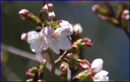 | ●大阪管区気象台のソメイヨシノ標本木は大阪城西の丸庭園にあって、昨日3/26開花とか・・・。野鳥園の管理人の「勝手に標本木」も、今朝5輪以上開花してました。大阪市の満開予想は4/1 |