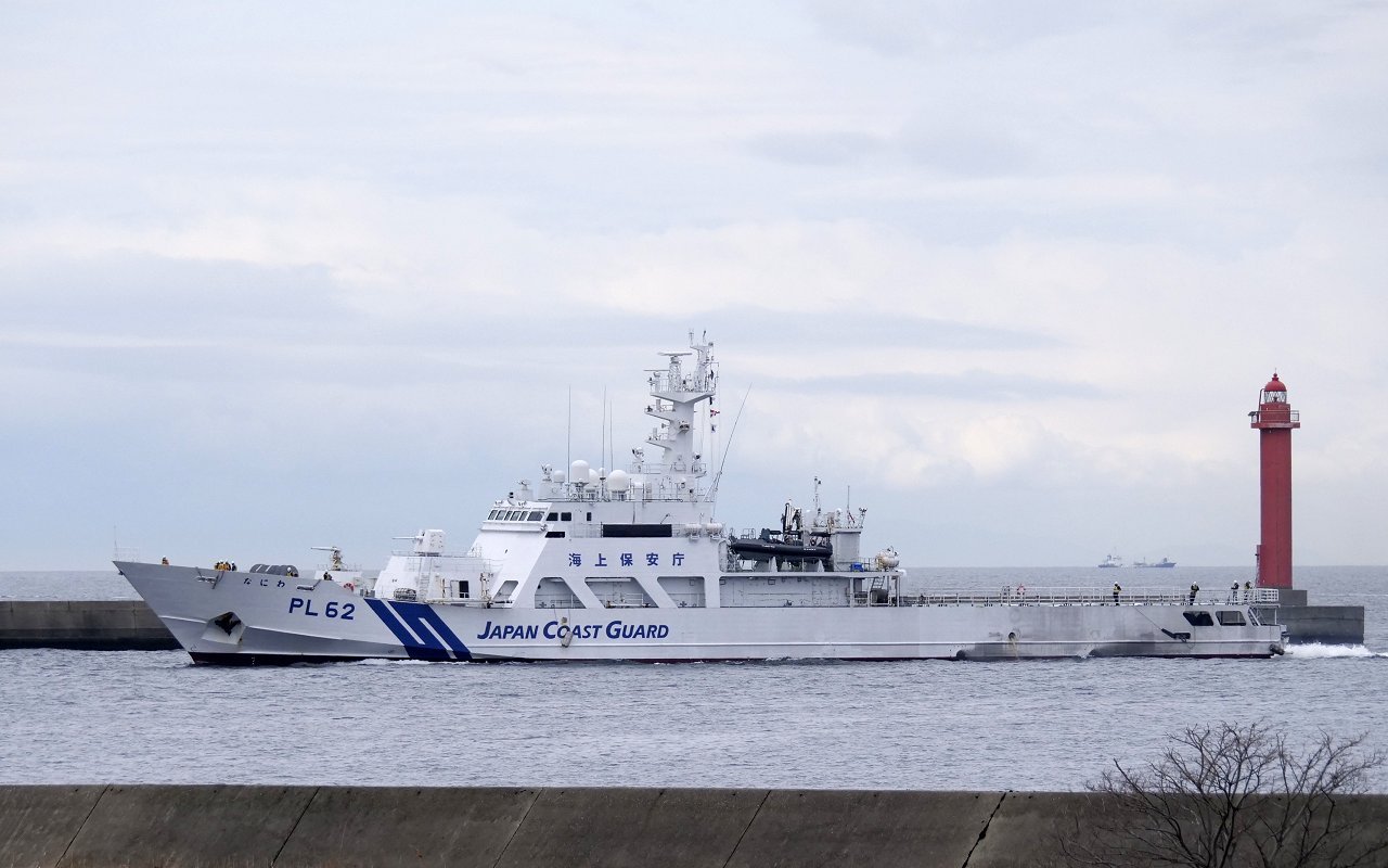 | ●海保の船が南港に・・・。「PL62なにわ?」・・・。調べると今年配置替えで、元はPL62いしがきだとか。尖閣諸島周辺で激務に就いてくれていた船だった。ご苦労様でした。 |