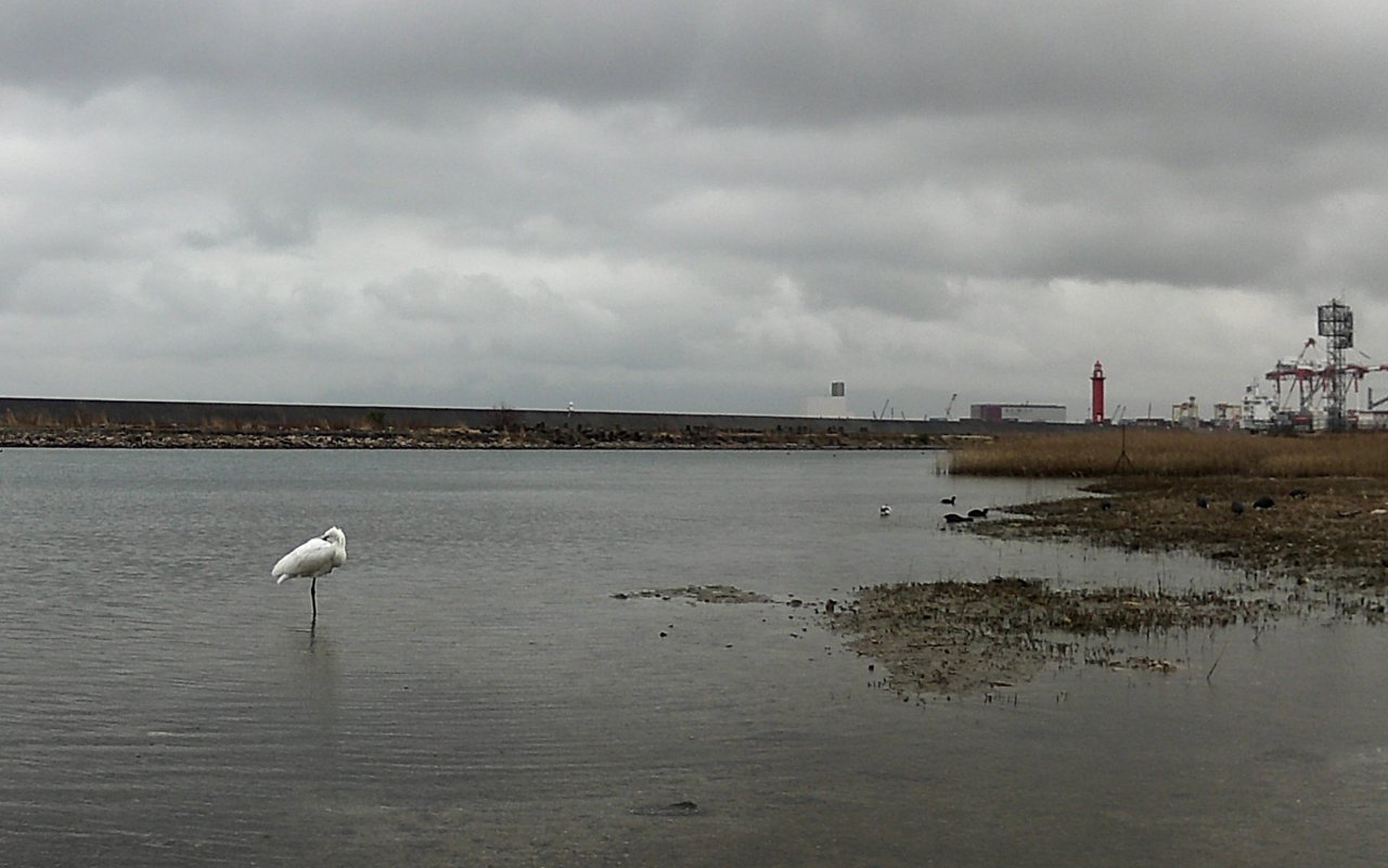ご覧の様に冬場の干潟は昼間は結構寂しくて、少しのカモ達やサギ達とか葦苅でいそがしくしているmedaichiくらいしかいません。