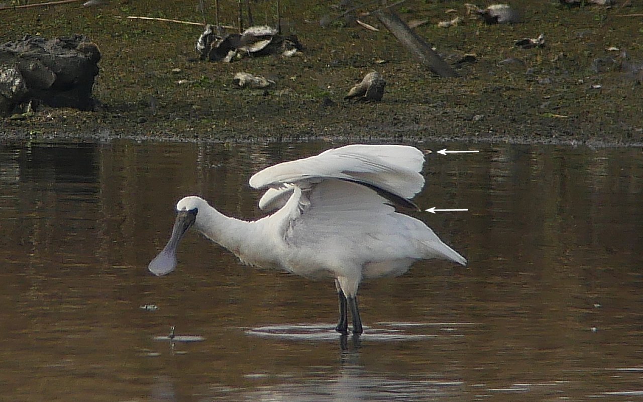 昨年秋からクロツラヘラサギは2個体来ましたが、11/26に1日だけ観察された個体とは別個体と適当に書いちゃったので写真を探し出して比較してみました。11/26の子は遠かったですけどやはり嘴は平滑なようで肉色味は感じられずほとんど黒かったです。風切羽の暗色部はきっちり見れなかったのですが初列の暗色班はありました。11/26の子は2暦年冬の可能性が高いと思います。