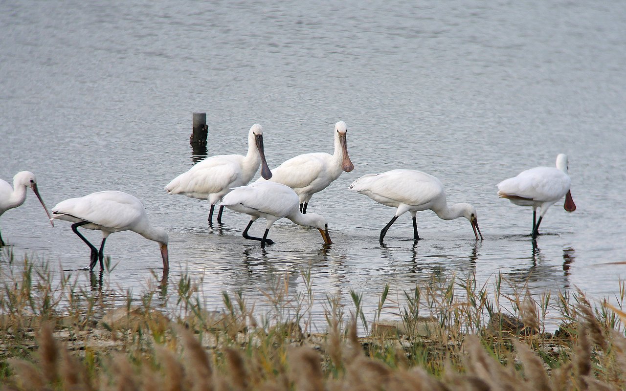 11/19(水)の定休日、今日は干潟のカメラのデータ回収日。medaichiは展望塔前の除草の刈残したやつの続き・・・。嫌々、刈払い機の刃を研いでいたらNPOのW田氏が、「ヘラサギ8羽降りてますけど・・・!!」などとおっしゃる。やりかけを放り出してカメラをひっつかんでとりあえずの証拠写真を・・・。