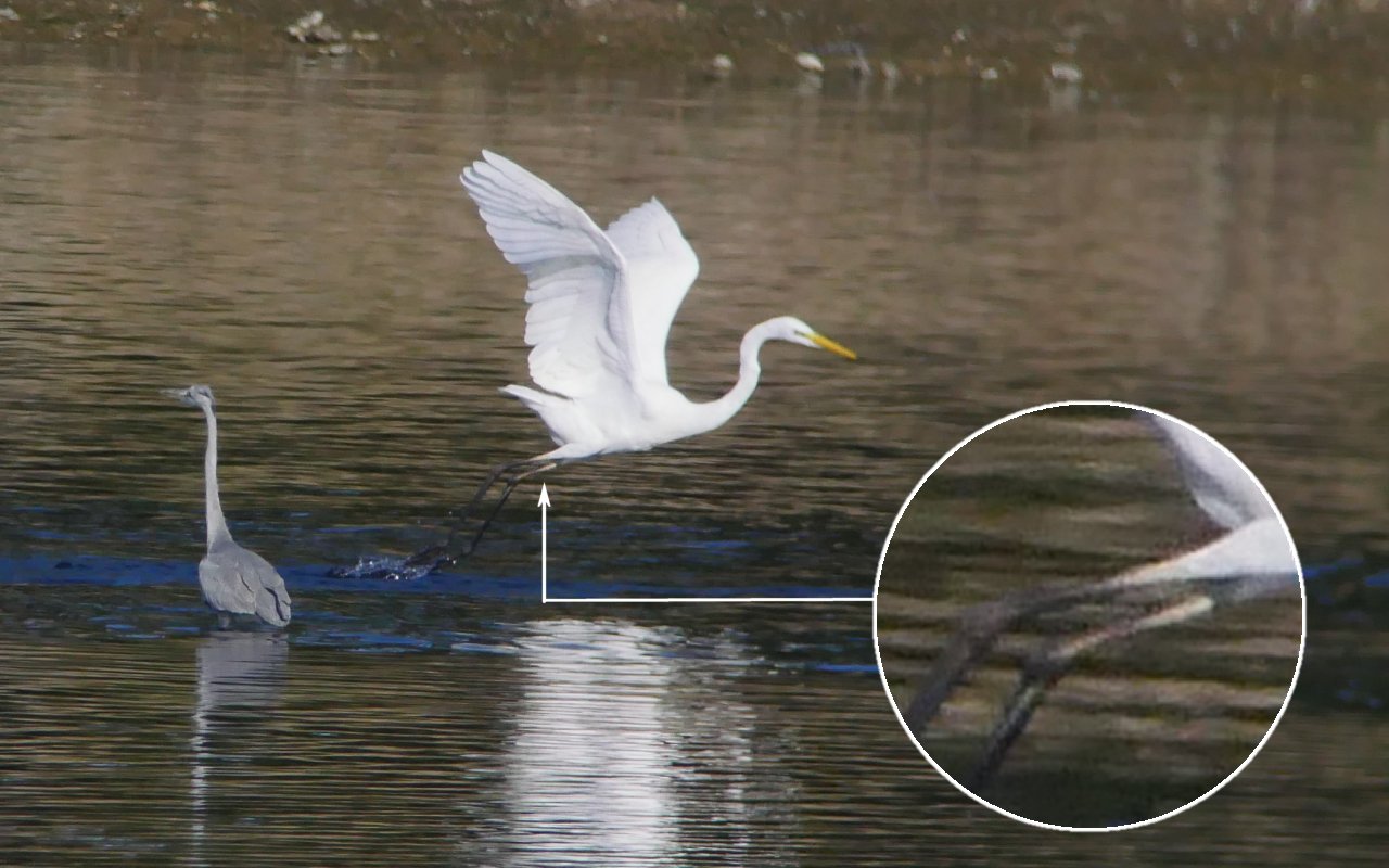 当然、脛から跗蹠にかけての黄色味のチェックというわけで、飛ぶのを待って撮影すると遠かったですが踵のあたりまで黄色味をおびていますから、この子は亜種ダイサギでよさそうです。も少し近くで撮影できればいいんですけどねえ・・・。