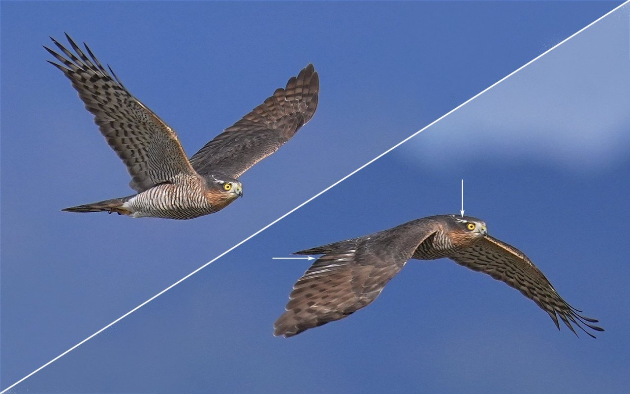 今季初のハイタカ。白い眉があり、翼面に褐色味、次列風切に茶色の幼羽が残っているように見えるので、2暦年の♀かも・・・。お写真はO氏。多謝