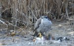 今季野鳥園で越冬しているオオタカ♀がオカヨシガモを捕らえた。展望塔前の汽水池岸に持ってきてくれたので今日のお客様はラッキーでした。