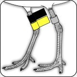 色のついたプラスチック製の足環(バンド)で、バンドの色や装着時の色の組み合わせ、装着部位(右足・左足・関節の上か下か等)により、個体識別や、標識地、標識時期等の情報を読み取ることが可能になります。大型の鳥の場合、大きなバンドには、フラッグのような文字情報が刻印されている場合もあります。ハクチョウなどの大型の水鳥の首に装着されたものは視認性も良く有効と思われます。