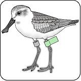 アラスカ州のハマシギ標識については、2010年冬にデータロガーを右足上部に付けて観察され、データロガーを回収の後、再標識・放鳥。2012年春に大阪南港野鳥園で再度、観察されたEEK個体(通称)を例として、イラストを左に揚げてみた。(観察された記事・画像はこちらへ)